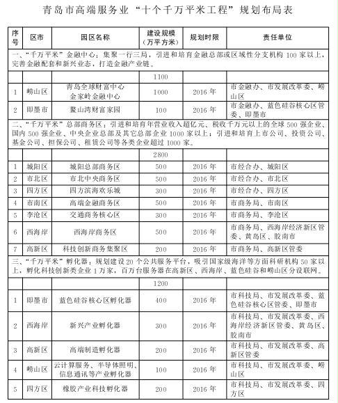 附件:1.青島市高端服務(wù)業(yè)“十個(gè)千萬(wàn)平米工程”規(guī)劃布局表