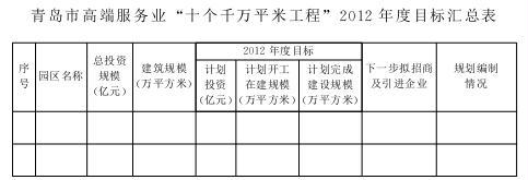 2.青島市高端服務(wù)業(yè)“十個(gè)千萬(wàn)平米工程”2012年度目標(biāo)匯總表