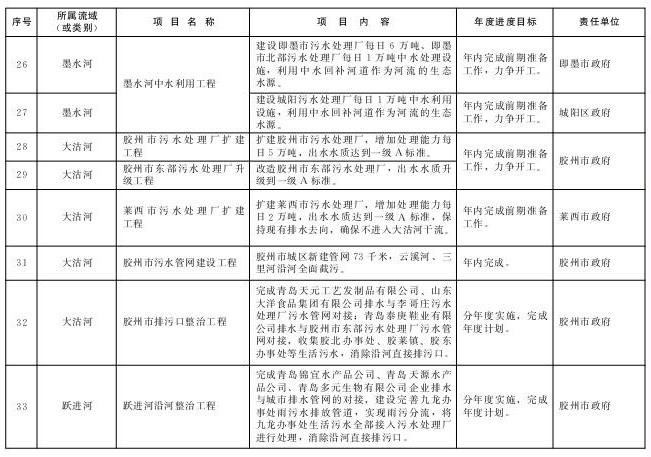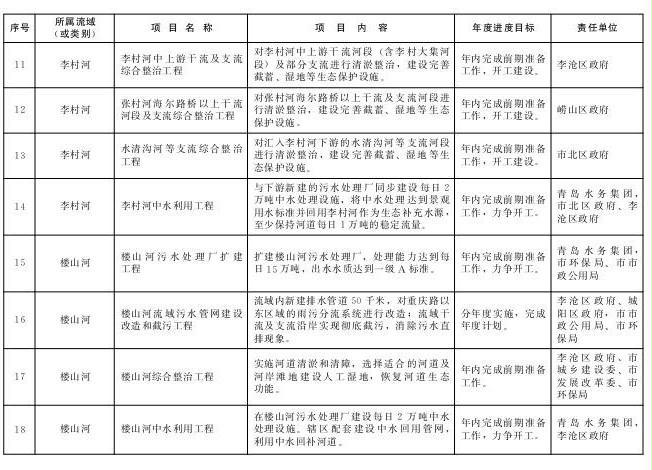 責(zé)任部門:李滄區(qū)政府、城陽區(qū)政府,青島水務(wù)集團(tuán),市市政公用局、市環(huán)保局
