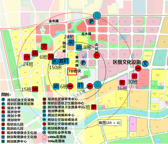 3.文體設(shè)施:規(guī)劃周邊有區(qū)級文化設(shè)施;現(xiàn)狀周邊有街道綜合文化站、社區(qū)級體育中心。