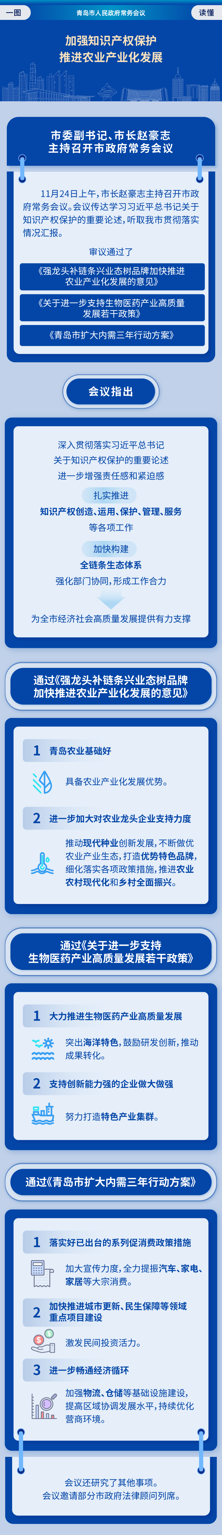圖文解讀:市政府常務(wù)會議召開:加強(qiáng)知識產(chǎn)權(quán)保護(hù),推進(jìn)農(nóng)業(yè)產(chǎn)業(yè)化發(fā)展